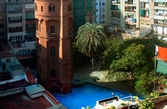 A very curious beach is waiting for you in the middle of l'Eixample, inside a courtyard at the foot of the Torre de les Aigües. It is so-called as "playa de l'Eixample" (Eixample's beach), but it is not a regular beach. It is a pool surrounded by sand and gardens. This public space is opened from June to September (Mondays to Saturdays) and the access costs 1.50 € per person. It also has a toilet and shower area. The gardens are usually a pretty popular place for families with children, because it is a place where they can distract themselves and interact with each other.